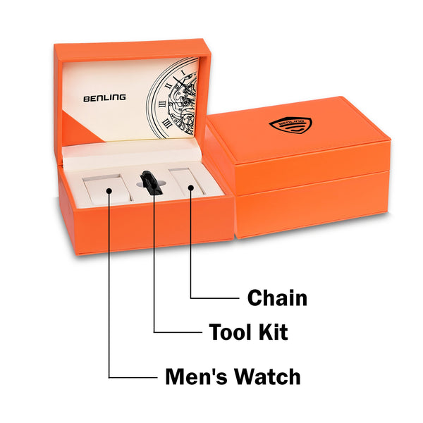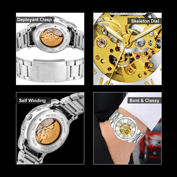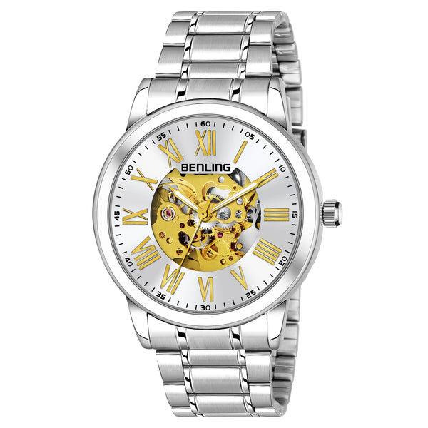 Benling Automatic Skeleton Mechanical Watch for Men | Self-Winding Movement | Leather & Stainless Steel Strap | Open Gear Dial | Luxury Casual & Formal Wear
