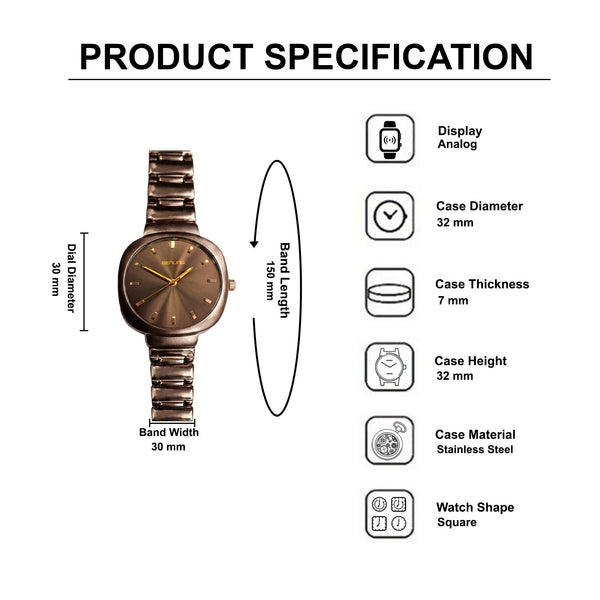 BENLING Women Analog Watch with Stainless Steel Strap, Brown Dial & Rose Gold Finish, Quartz Movement, Stylish Casual & Formal Wrist Watch for Girls & Ladies