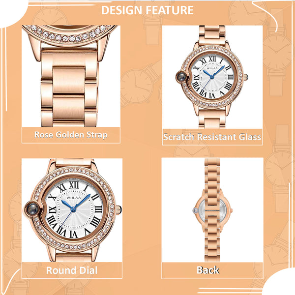 Benling Women’s Rose Gold Analog Wrist Watch | Metal Strap | Roman Number Dial | Stylish & Elegant