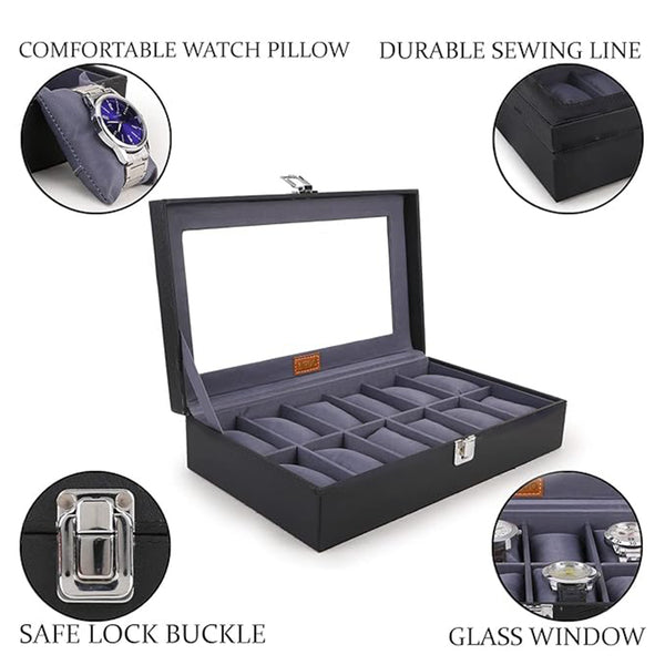The watch box provides a safe and secure storage solution for your watches, protecting them from scratches, dust, and other damage.