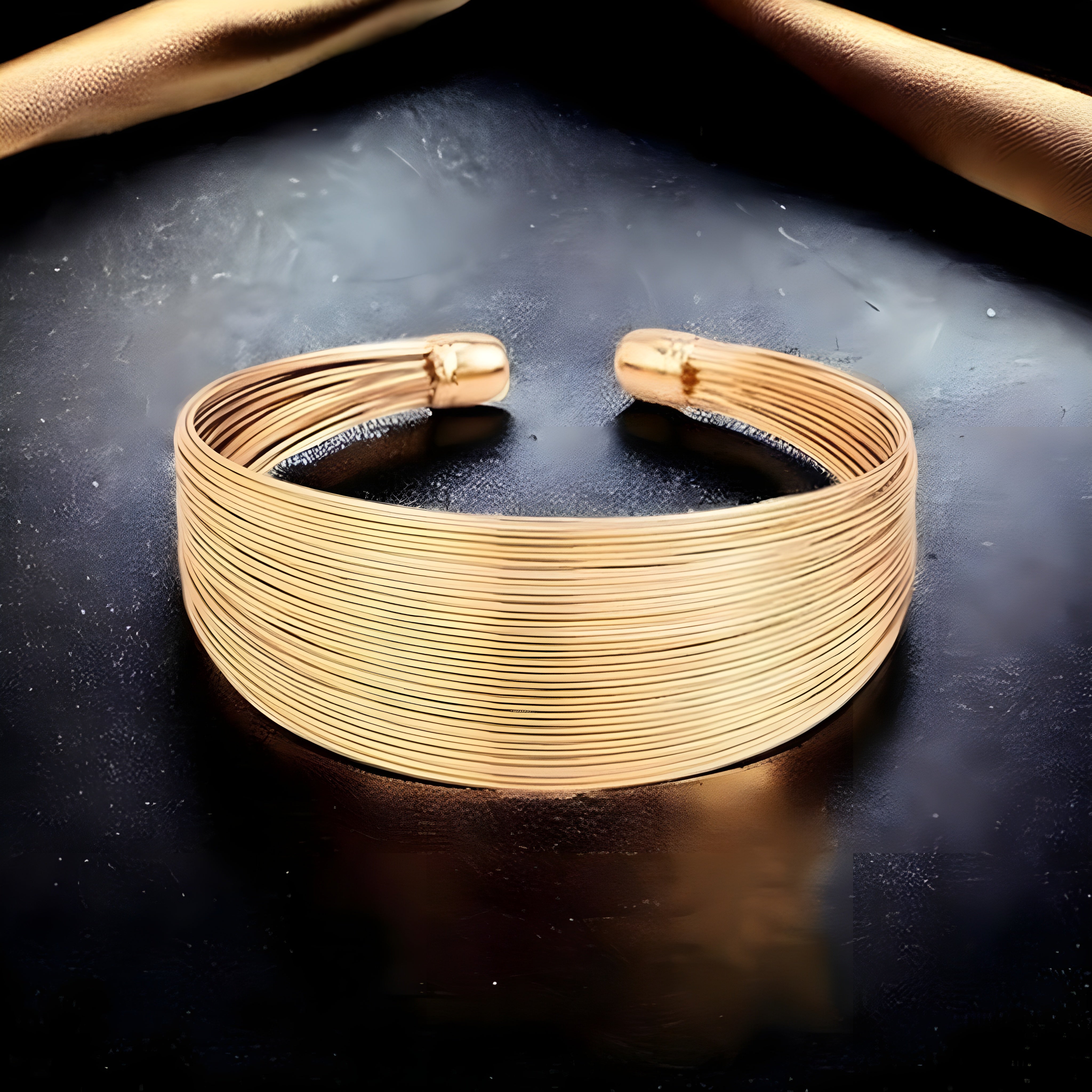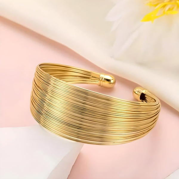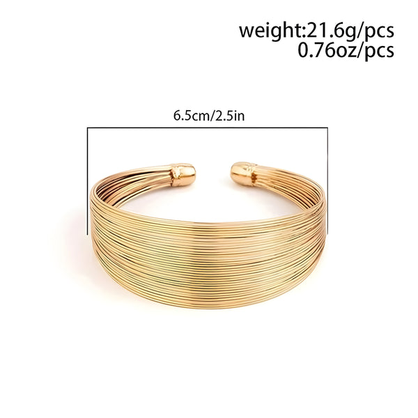 Designed with multiple thin gold-tone wires bundled together, this bracelet delivers a modern yet elegant look that adds sophistication and makes a stylish statement for any occasion.